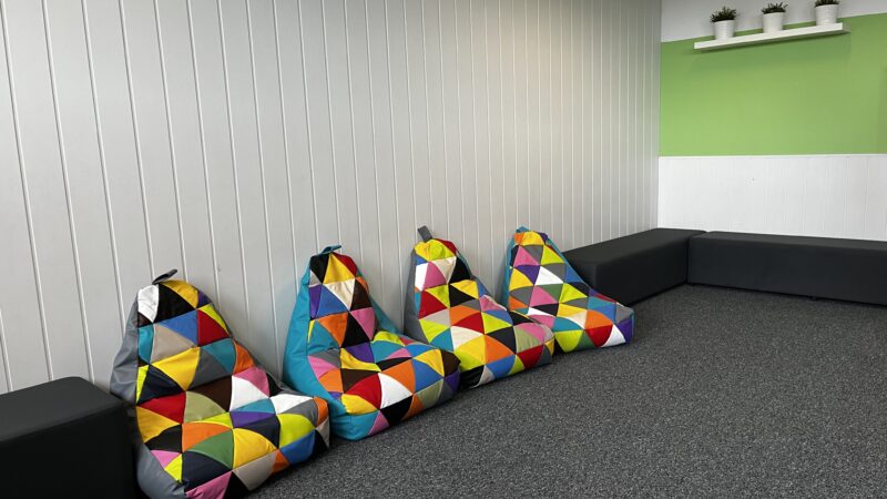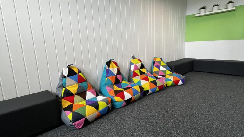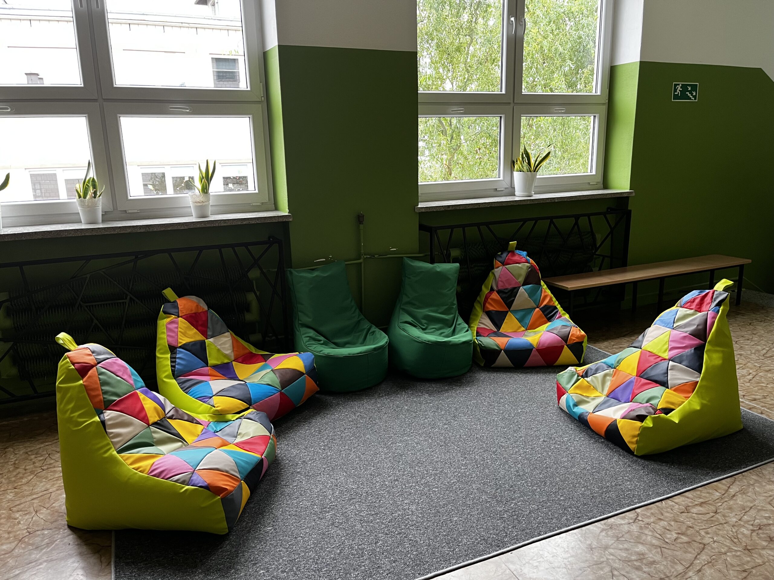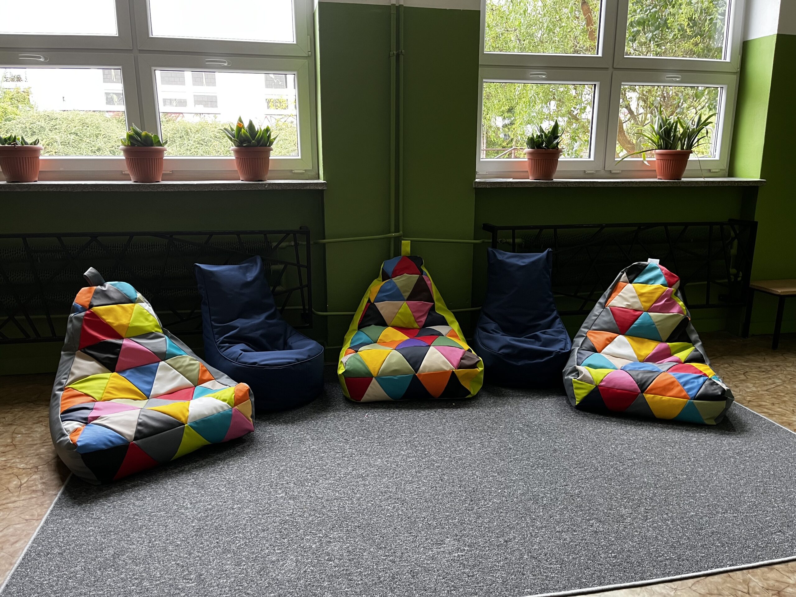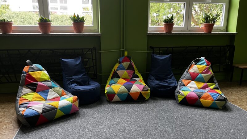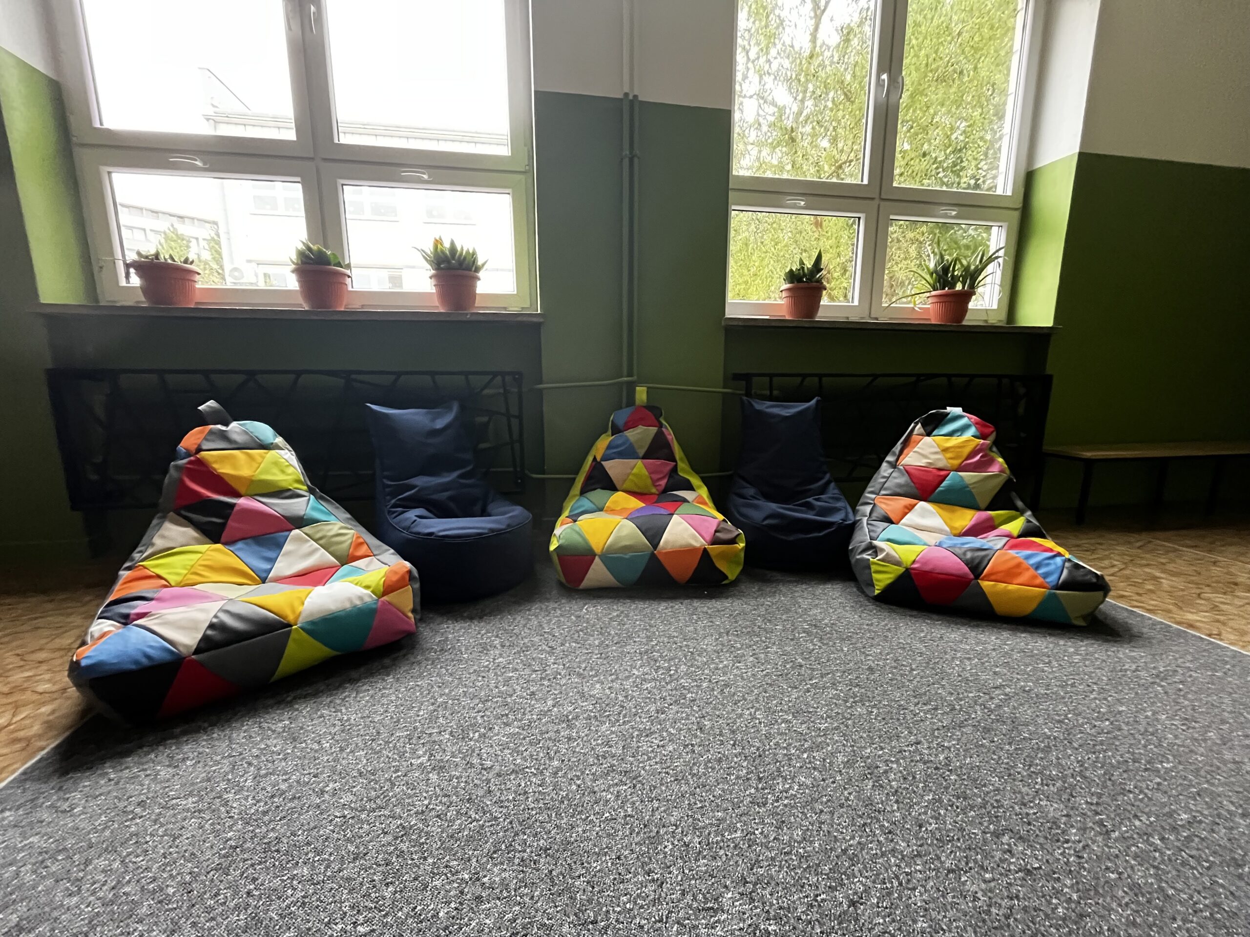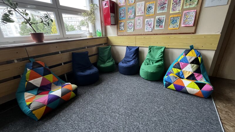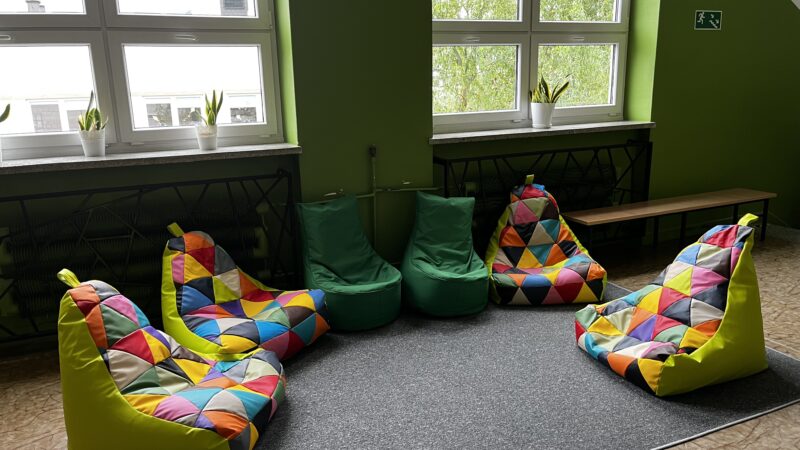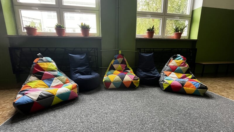 z radością informujemy, że w naszej szkole powstały kąciki odpoczynku – przyjazne przestrzenie, w których uczniowie mogą zrelaksować się podczas przerw. Zostały one wyposażone w nowe wykładziny i kolorowe pufy, tworząc komfortowe miejsce do odpoczynku i rozmów z rówieśnikami.