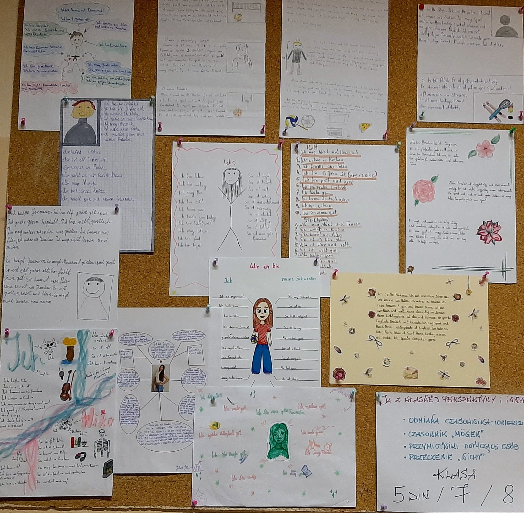 „Ja własnymi oczami i oczami innych” to temat projektu, w którym wzięli uczniowie klas 5 DIN, 7 i 8. Wykorzystując swoją wiedzę z języka niemieckiego opisywali siebie uwzględniając również perspektywę innych osób. Ile dobra dostrzega w nas drugi człowiek, którego my w sobie nie widzimy. To była ciekawa podróż w głąb siebie.